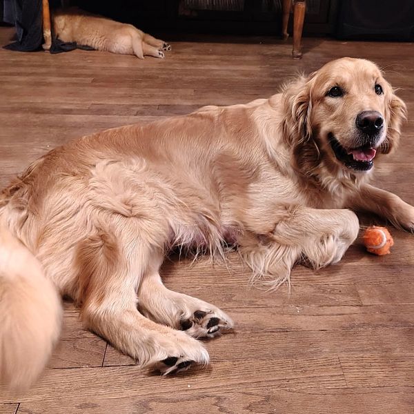 Athena is a beautiful golden color with the need to retrieve. She insists on having a toy (or 3) in her mouth and she always holds her head high just like her father who has AKC titles including "best in show." Athena comes from a traceable bloodline through AKC and has completed DNA testing and OFA hips and elbows with no concerns. Athena is toy motivated and enjoys prancing around the house and yard while holding something in her mouth. She is full of energy and loves pets while she makes cooing sounds.